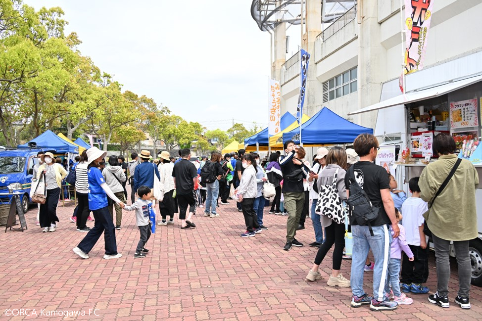 常時4~8店舗ほどの飲食、物販の店舗が軒を連ねて、スタジアム回りを盛り上げています。