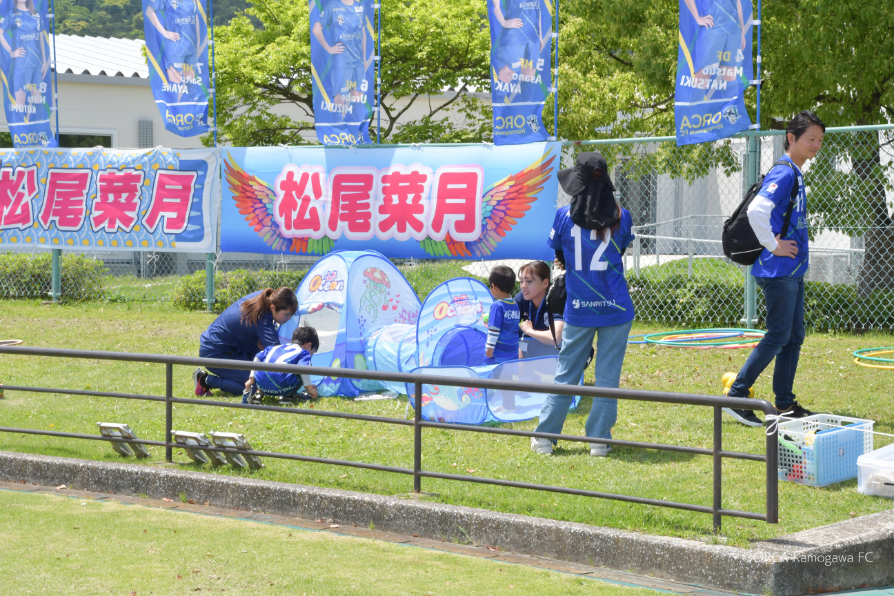内容: ゴール裏芝生席に子供が楽しく遊べる遊具や道具を用意して、親御さんは試合観戦をしながら子供たちを自由に遊ばせることができるスペースを設置