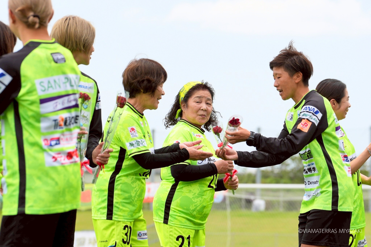 企画説明:選手のお母さま、地域や雇用先などお母さんのようにいつも支えてくださっている皆様と一緒に入場しました。選手は普段照れくさくて言えない「ありがとう」の気持ちを伝えることができたと振り返っていました。