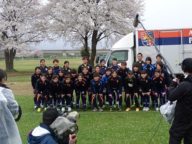 今回、長野のテレビ局「abn長野朝日放送」の番組「信州をカーナビ UぐるっTV」でパルセイロレディースの特集を組んでいただけることになったので、11日の練習前にその撮影が行われました