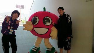 横川商店街のゆるキャラ、トマトンはアンジュ立ち上げの時から試合に駆けつけてくれたり、一緒にイベントに出たりと、
