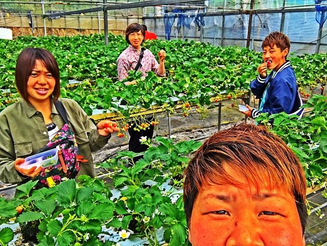 私がイチゴ狩りしたいと言った一言で、えりことドンキとたくが連れて行ってくれました