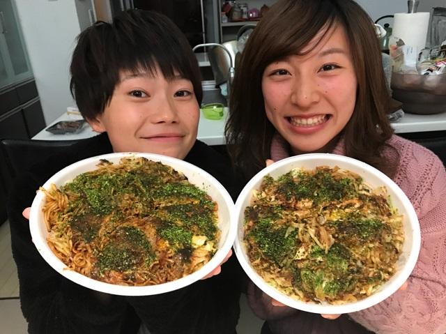 先日、小学生の頃から行きつけの府中町の「よしだ」というお店のお好み焼きをお持ち帰りをしてアンジュ同期の鈴木選手と食べました