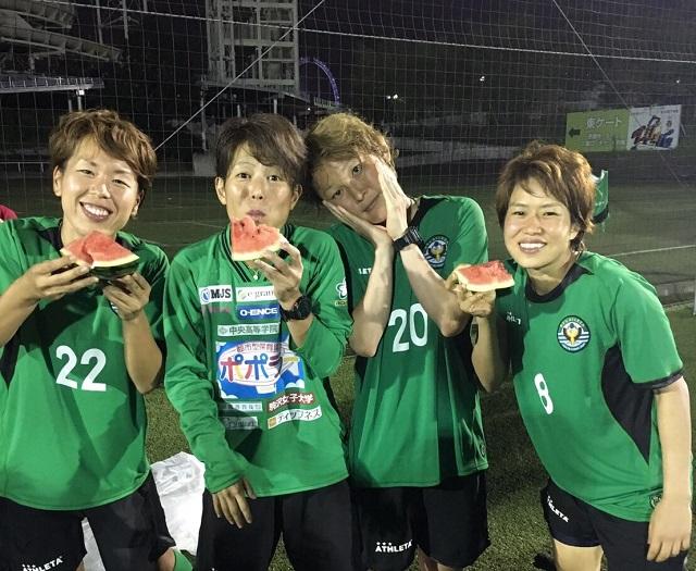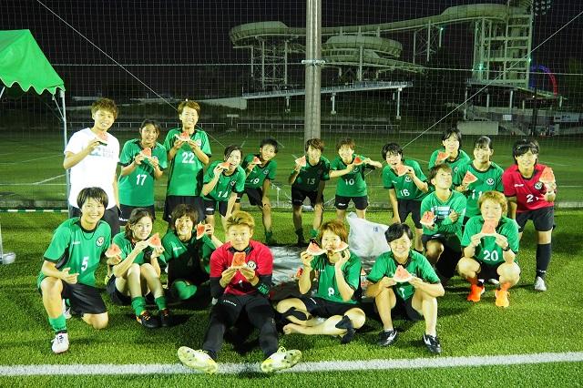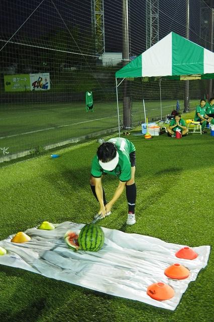 スイカってゆったらスイカ割りやろってことで、練習試合後にチーム全員でスイカ割りをやりました。