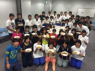 写真は合宿の夜、みんなでカレーを食べた時の写真です!