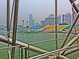 この写真は、シンガポールのマーラインの近くにある海の上に浮いているサッカー場です。