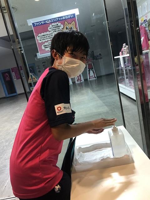 (ピッチ外ではマスクをつける。手洗い・うがい、消毒をこまめにする↓写真2)