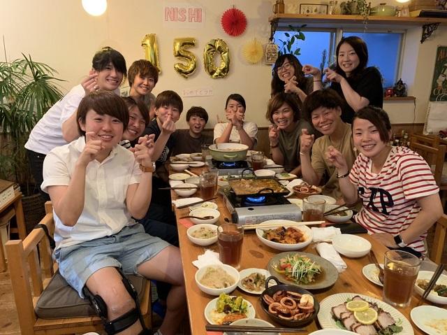 先日、チームの大先輩である西川選手の150試合達成のお祝いをしました