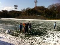 写真は日体大のグランドですが雪が見えたり見えなかったり(^^)