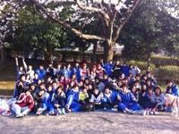 先日、選手たちでお花見をしました。日体大のシンボルマークは六つの花弁を持った花桜です。