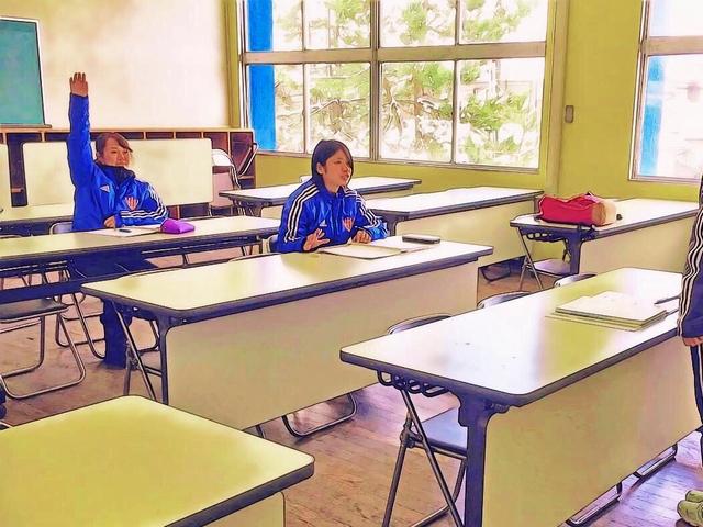 フィジカルトレーニング後の授業で疲れていますが、みんな頑張っています