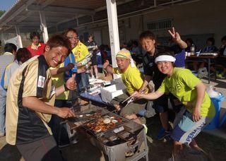 一緒にお肉や焼そばを焼いたり食べたりワイワイガヤガヤ、