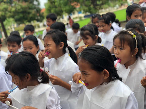 カンボジアでは、現地の小学生の子供達へ歯科検診やブラッシング指導を行なったり、サッカーの指導をさせていただきました