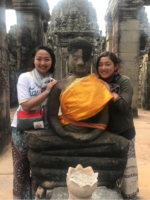ボランティア活動の他にも、現地の方々にナイトマーケットやプノンペンを案内してもらったり、あの有名なアンコールワットやクメールの微笑みなどの遺跡巡りなどもさせていただきました