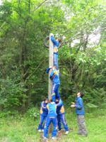 6~7人のグループに分かれて、3mくらいの壁をよじ登ったり、高さ5mの丸太にタイヤを上から通すなど、普通に考えたら「無理でしょ!?」と思うような課題をみんなで協力してクリアしていくものです。
