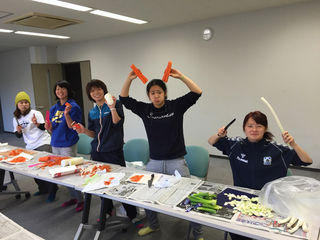 午後は選手が作った豚汁とフランクフルトを振る舞い、