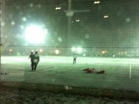 その日は屋内だったのですが、練習が始まる頃パラパラと降り始め...、終わった時には外のピッチは一面真っ白。