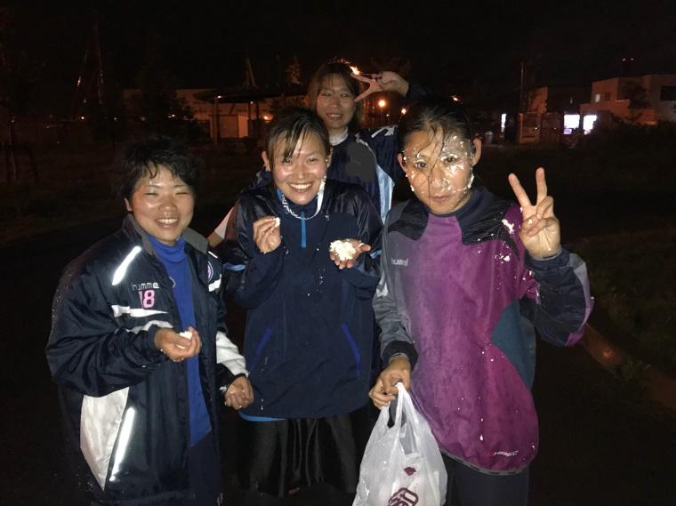 誕生日の日は練習があったので練習の後、♯20姜選手と♯18渡邊選手と一緒に宇野選手の誕生日をお祝いしました