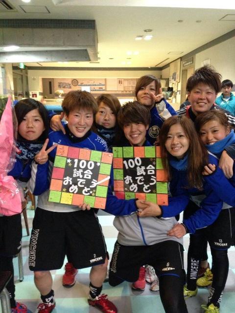 前節の試合で田中真理子選手が100試合、前々節では福原菜緒選手が100試合を達成しました。