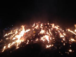 下の写真は正月飾りを燃やしている御神火と境内の様子です。