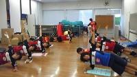 リーグは今、カップ戦真っ只中ということで、いつも練習前に励んでる筋トレの様子を...。