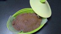チョコ、バター、砂糖、卵、ホットケーキミックス、ココアを混ぜてレンジで3分あたためるだけです☆☆