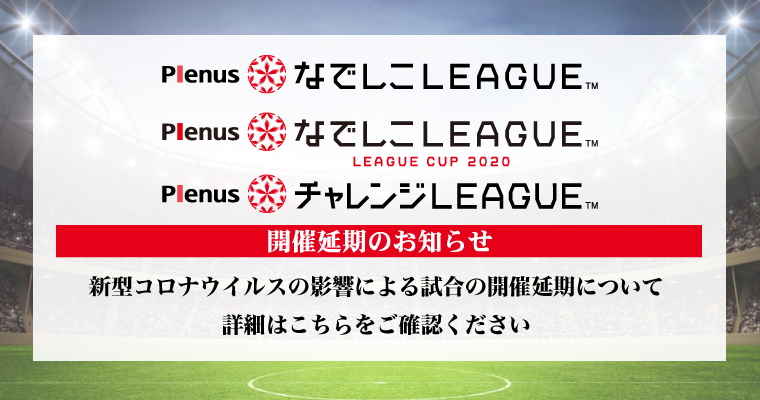 このページを共有する 2020年03月25日 開催延期のお知らせ【4/4(土)~4/26(日)開催予定試合】 日本女子サッカーリーグは新型コロナウイルスの影響により、4月4日(土)から4月26日(日)に開催予定のすべての試合について、開催延期を決定いたしました。 延期が決定した試合の代替開催日およびチケットの取扱いについては、決定次第お知らせいたします。 ■開催延期となる試合 ■参照開催延期のお知らせ【2020プレナスなでしこリーグ1部および2部 第1節~第2節】 このページを共有する 前へ 一覧へ 次へ 最新記事2025年12月10日リーグ2026シーズンチーム編成および開幕日・大会期間決定のお知らせ2025年12月08日チーム試合レポート:皇后杯準々決勝 伊賀FCくノ一三重 vs 日体大SMG横浜2025年12月08日チーム試合レポート:皇后杯準々決勝 セレッソ大阪ヤンマーレディース vs 朝日インテック・ラブリッジ名古屋2025年12月08日チーム試合レポート:皇后杯準々決勝 サンフレッチェ広島レジーナ vs ASハリマアルビオン2025年11月25日チーム試合レポート:皇后杯3回戦 三菱重工浦和レッズレディース vs 伊賀FCくノ一三重2025年11月25日チーム試合レポート:皇后杯3回戦 AC長野パルセイロ・レディース vs 朝日インテック・ラブリッジ名古屋2025年11月25日チーム試合レポート:皇后杯3回戦 ASハリマアルビオン vs JFAアカデミー福島2025年11月25日チーム試合レポート:皇后杯3回戦 INAC神戸レオネッサ vs 静岡SSUボニータ2025年11月25日チーム試合レポート:皇后杯3回戦 日体大SMG横浜 vs ディオッサ出雲FC2025年11月20日チーム試合レポート:皇后杯2回戦 日テレ・東京ヴェルディベレーザ vs ニッパツ横浜FCシーガルズ
