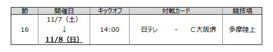 ■2020プレナスなでしこリーグ1部 第16節 開催日 変更