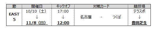 このページを共有する 2020年10月28日 第5節 名古屋 vs つくば 代替開催日決定のお知らせ(2020プレナスチャレンジリーグEAST) 台風14号の接近による影響を考慮し開催中止となりました2020プレナスチャレンジリーグEAST 第5節 NGUラブリッジ名古屋vsつくばFCレディース[10/10(土)17:00キックオフ/テラスポ鶴舞]は、11/8(日)12:00より豊田市中央公園芝生広場にて代替開催することが決定しましたのでお知らせいたします。 このページを共有する 前へ 一覧へ 次へ 最新記事2025年12月10日リーグ2026シーズンチーム編成および開幕日・大会期間決定のお知らせ2025年12月08日チーム試合レポート:皇后杯準々決勝 伊賀FCくノ一三重 vs 日体大SMG横浜2025年12月08日チーム試合レポート:皇后杯準々決勝 セレッソ大阪ヤンマーレディース vs 朝日インテック・ラブリッジ名古屋2025年12月08日チーム試合レポート:皇后杯準々決勝 サンフレッチェ広島レジーナ vs ASハリマアルビオン2025年11月25日チーム試合レポート:皇后杯3回戦 三菱重工浦和レッズレディース vs 伊賀FCくノ一三重2025年11月25日チーム試合レポート:皇后杯3回戦 AC長野パルセイロ・レディース vs 朝日インテック・ラブリッジ名古屋2025年11月25日チーム試合レポート:皇后杯3回戦 ASハリマアルビオン vs JFAアカデミー福島2025年11月25日チーム試合レポート:皇后杯3回戦 INAC神戸レオネッサ vs 静岡SSUボニータ2025年11月25日チーム試合レポート:皇后杯3回戦 日体大SMG横浜 vs ディオッサ出雲FC2025年11月20日チーム試合レポート:皇后杯2回戦 日テレ・東京ヴェルディベレーザ vs ニッパツ横浜FCシーガルズ