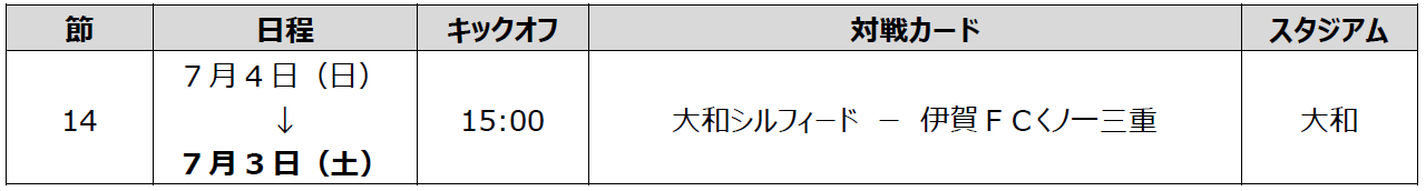 このページを共有する 2021年05月28日 2021プレナスなでしこリーグ1部 第14節 大和シルフィード ー 伊賀FCくノ一三重 戦 開催日変更のお知らせ 2021プレナスなでしこリーグ1部 第14節の試合において、開催日変更をした試合がありますので、お知らせいたします。 ■開催日変更 対象試合2021プレナスなでしこリーグ1部 【理由】会場として利用する、大和なでしこスタジアムの都合のため。 なお、上記試合についてのお問い合わせ先は以下のとおりです。お問合せ先: 大和シルフィード(TEL:046-207-5877) このページを共有する 前へ 一覧へ 次へ 最新記事2025年12月10日リーグ2026シーズンチーム編成および開幕日・大会期間決定のお知らせ2025年12月08日チーム試合レポート:皇后杯準々決勝 伊賀FCくノ一三重 vs 日体大SMG横浜2025年12月08日チーム試合レポート:皇后杯準々決勝 セレッソ大阪ヤンマーレディース vs 朝日インテック・ラブリッジ名古屋2025年12月08日チーム試合レポート:皇后杯準々決勝 サンフレッチェ広島レジーナ vs ASハリマアルビオン2025年11月25日チーム試合レポート:皇后杯3回戦 三菱重工浦和レッズレディース vs 伊賀FCくノ一三重2025年11月25日チーム試合レポート:皇后杯3回戦 AC長野パルセイロ・レディース vs 朝日インテック・ラブリッジ名古屋2025年11月25日チーム試合レポート:皇后杯3回戦 ASハリマアルビオン vs JFAアカデミー福島2025年11月25日チーム試合レポート:皇后杯3回戦 INAC神戸レオネッサ vs 静岡SSUボニータ2025年11月25日チーム試合レポート:皇后杯3回戦 日体大SMG横浜 vs ディオッサ出雲FC2025年11月20日チーム試合レポート:皇后杯2回戦 日テレ・東京ヴェルディベレーザ vs ニッパツ横浜FCシーガルズ