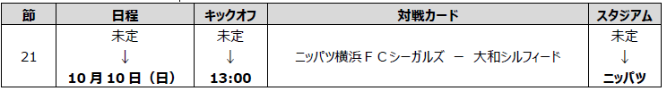 このページを共有する 2021年06月18日 2021プレナスなでしこリーグ1部 第21節 ニッパツ横浜FCシーガルズ - 大和シルフィード 戦 開催日・キックオフ時刻・会場 追加決定のお知らせ 2021プレナスなでしこリーグ1部の試合において、開催日・キックオフ時刻・会場を追加決定した試合がありますので、お知らせいたします。 ■開催日・キックオフ時刻・会場 追加決定2021プレナスなでしこリーグ1部 このページを共有する 前へ 一覧へ 次へ 最新記事2025年12月10日リーグ2026シーズンチーム編成および開幕日・大会期間決定のお知らせ2025年12月08日チーム試合レポート:皇后杯準々決勝 伊賀FCくノ一三重 vs 日体大SMG横浜2025年12月08日チーム試合レポート:皇后杯準々決勝 セレッソ大阪ヤンマーレディース vs 朝日インテック・ラブリッジ名古屋2025年12月08日チーム試合レポート:皇后杯準々決勝 サンフレッチェ広島レジーナ vs ASハリマアルビオン2025年11月25日チーム試合レポート:皇后杯3回戦 三菱重工浦和レッズレディース vs 伊賀FCくノ一三重2025年11月25日チーム試合レポート:皇后杯3回戦 AC長野パルセイロ・レディース vs 朝日インテック・ラブリッジ名古屋2025年11月25日チーム試合レポート:皇后杯3回戦 ASハリマアルビオン vs JFAアカデミー福島2025年11月25日チーム試合レポート:皇后杯3回戦 INAC神戸レオネッサ vs 静岡SSUボニータ2025年11月25日チーム試合レポート:皇后杯3回戦 日体大SMG横浜 vs ディオッサ出雲FC2025年11月20日チーム試合レポート:皇后杯2回戦 日テレ・東京ヴェルディベレーザ vs ニッパツ横浜FCシーガルズ
