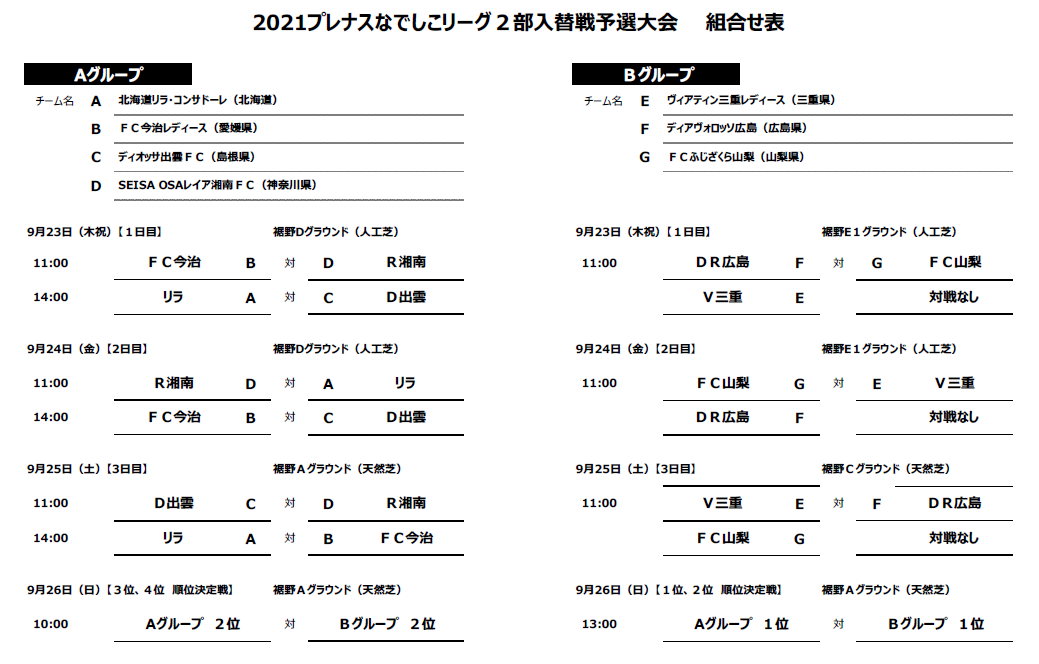 「2021プレナスなでしこリーグ2部入替戦予選大会」について詳細が決定いたしましたので、下記のとおり、お知らせいたします。