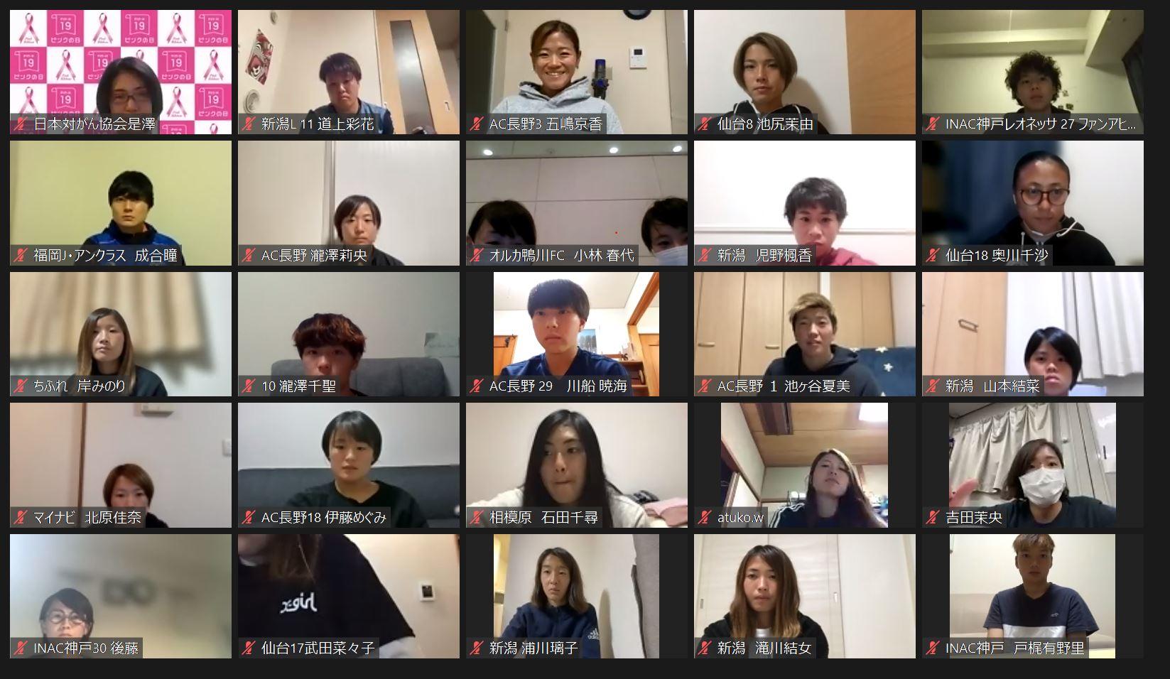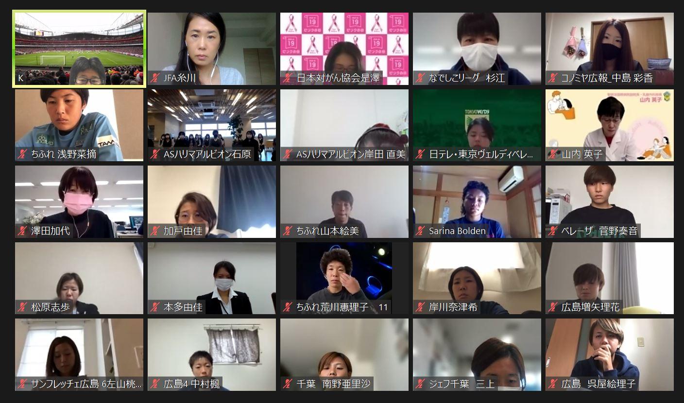 その一環として、21日(木)にはなでしこリーグとWEリーグ、女性審判員を対象とした、オンライン形式での乳がん勉強会を開催しました。