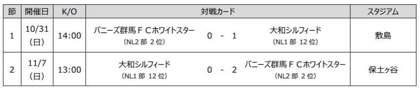 (2 戦合計の得失点差によりバニーズ群馬FCホワイトスターの勝利)