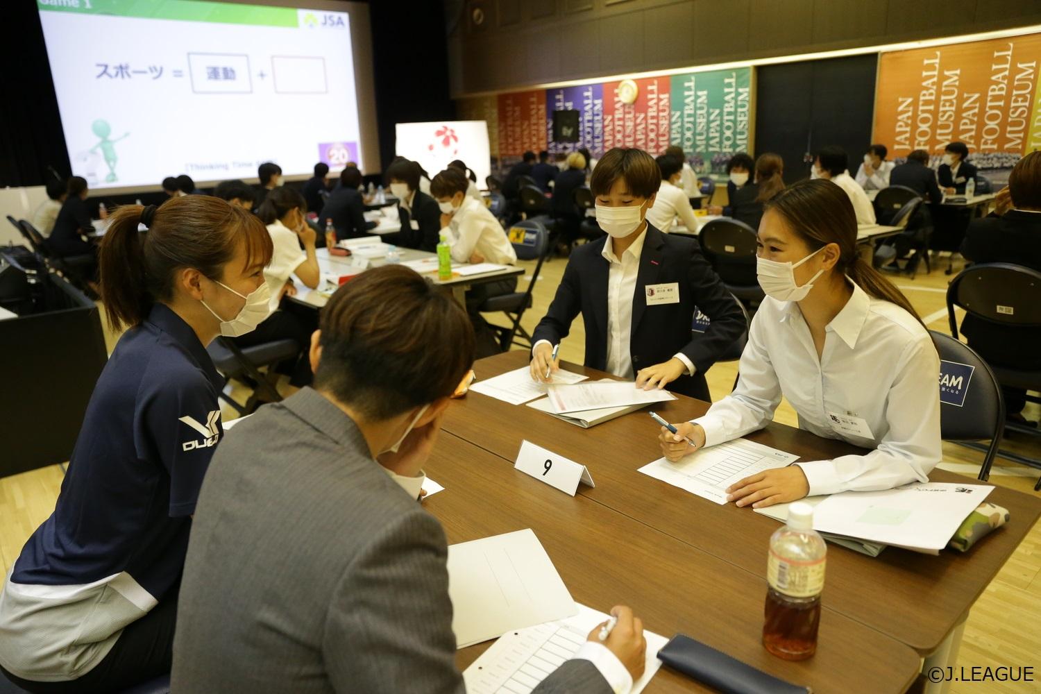 この研修に参加したのは、今年からなでしこリーガーとしてチームでプレーをする新人選手のほか、昨年までに参加できなかった2年目以降の選手も含めた計56人。座学やグループワークを通して、なでしこリーグの選手として必要な資質を身に付けていきました。