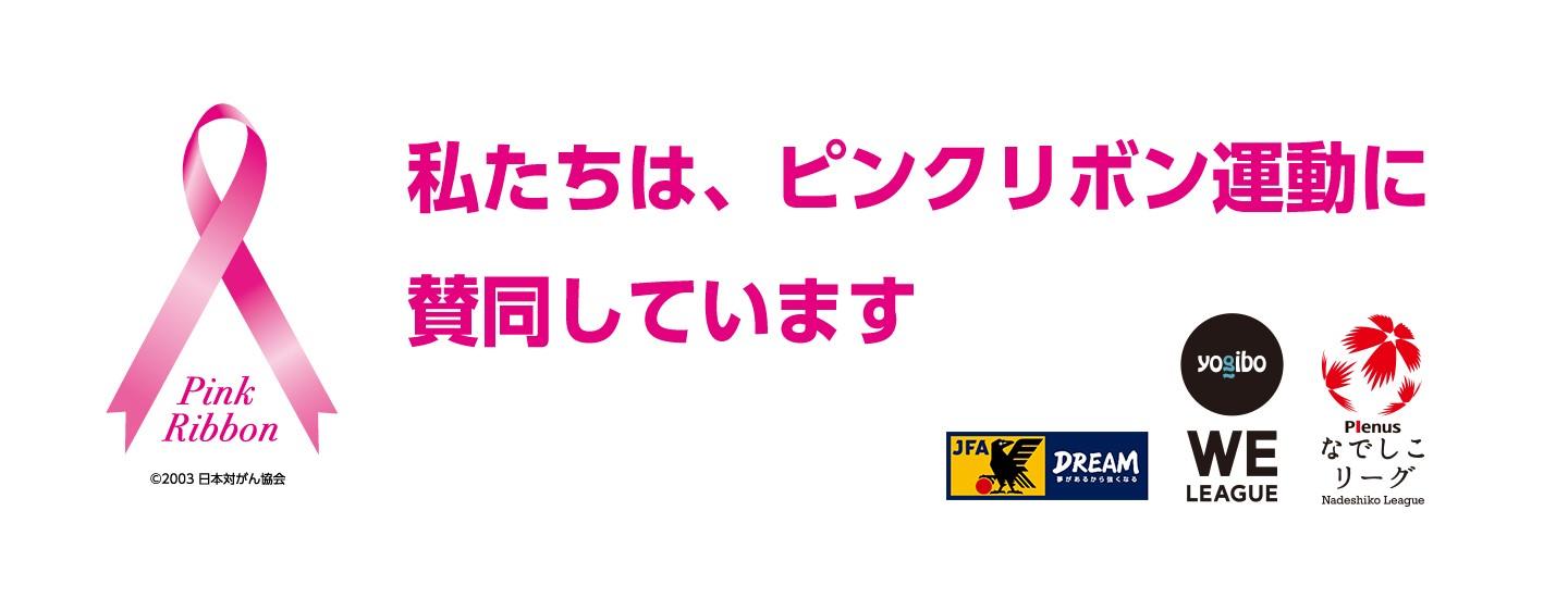 一般社団法人日本女子サッカーリーグ(なでしこリーグ)は、日本サッカー協会(JFA)、公益社団法人日本女子プロサッカーリーグ(WEリーグ)と共に、乳がんの啓発活動である「ピンクリボン運動」に賛同し、「ピンクリボン月間」となる10月に行われる各種事業において同活動の啓発に取り組みます。