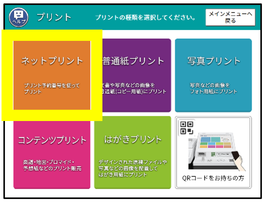 ③次の画面で「ネットプリント」を選択します
