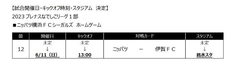 このページを共有する 2023年05月09日 2023プレナスなでしこリーグ1部 日程追加決定のお知らせ 2023プレナスなでしこリーグ1部の日程の未定分が追加決定いたしましたので、 下記の通りお知らせいたします。 このページを共有する 前へ 一覧へ 次へ 最新記事2025年12月15日チーム試合レポート:皇后杯準決勝 伊賀FCくノ一三重 vs INAC神戸レオネッサ2025年12月10日リーグ2026シーズンチーム編成および開幕日・大会期間決定のお知らせ2025年12月08日チーム試合レポート:皇后杯準々決勝 伊賀FCくノ一三重 vs 日体大SMG横浜2025年12月08日チーム試合レポート:皇后杯準々決勝 セレッソ大阪ヤンマーレディース vs 朝日インテック・ラブリッジ名古屋2025年12月08日チーム試合レポート:皇后杯準々決勝 サンフレッチェ広島レジーナ vs ASハリマアルビオン2025年11月25日チーム試合レポート:皇后杯3回戦 三菱重工浦和レッズレディース vs 伊賀FCくノ一三重2025年11月25日チーム試合レポート:皇后杯3回戦 AC長野パルセイロ・レディース vs 朝日インテック・ラブリッジ名古屋2025年11月25日チーム試合レポート:皇后杯3回戦 ASハリマアルビオン vs JFAアカデミー福島2025年11月25日チーム試合レポート:皇后杯3回戦 INAC神戸レオネッサ vs 静岡SSUボニータ2025年11月25日チーム試合レポート:皇后杯3回戦 日体大SMG横浜 vs ディオッサ出雲FC