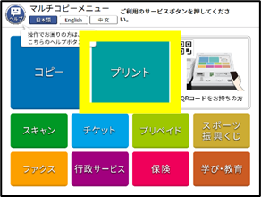 ②セブンーイレブン店内のマルチコピー機のタッチパネルから「プリント」を選択します