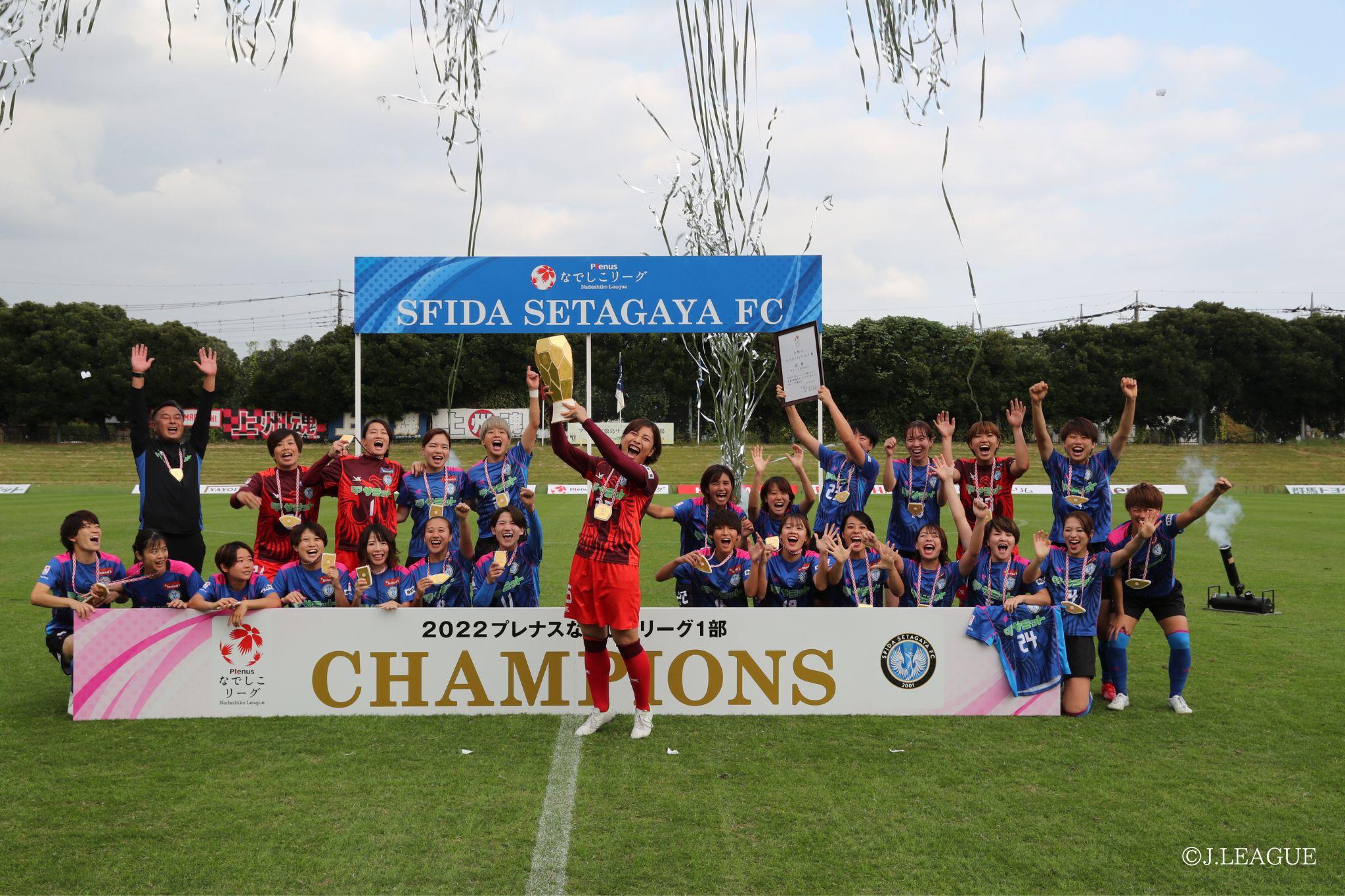 2022プレナスなでしこリーグ1部の最終節でスフィーダ世田谷FCが初優勝。真新しい、なでしこリーグ 1部優勝トロフィーを手にしました。22節を戦い抜いた個性豊かな選手たちは輝くメダルを胸に、満面の笑みで頭上に掲げ、優勝の重みを味わいました。振り返ってみれば、このオリジナルのトロフィーとメダルは新時代を迎えたなでしこリーグに、どうしても必要なものでした。
