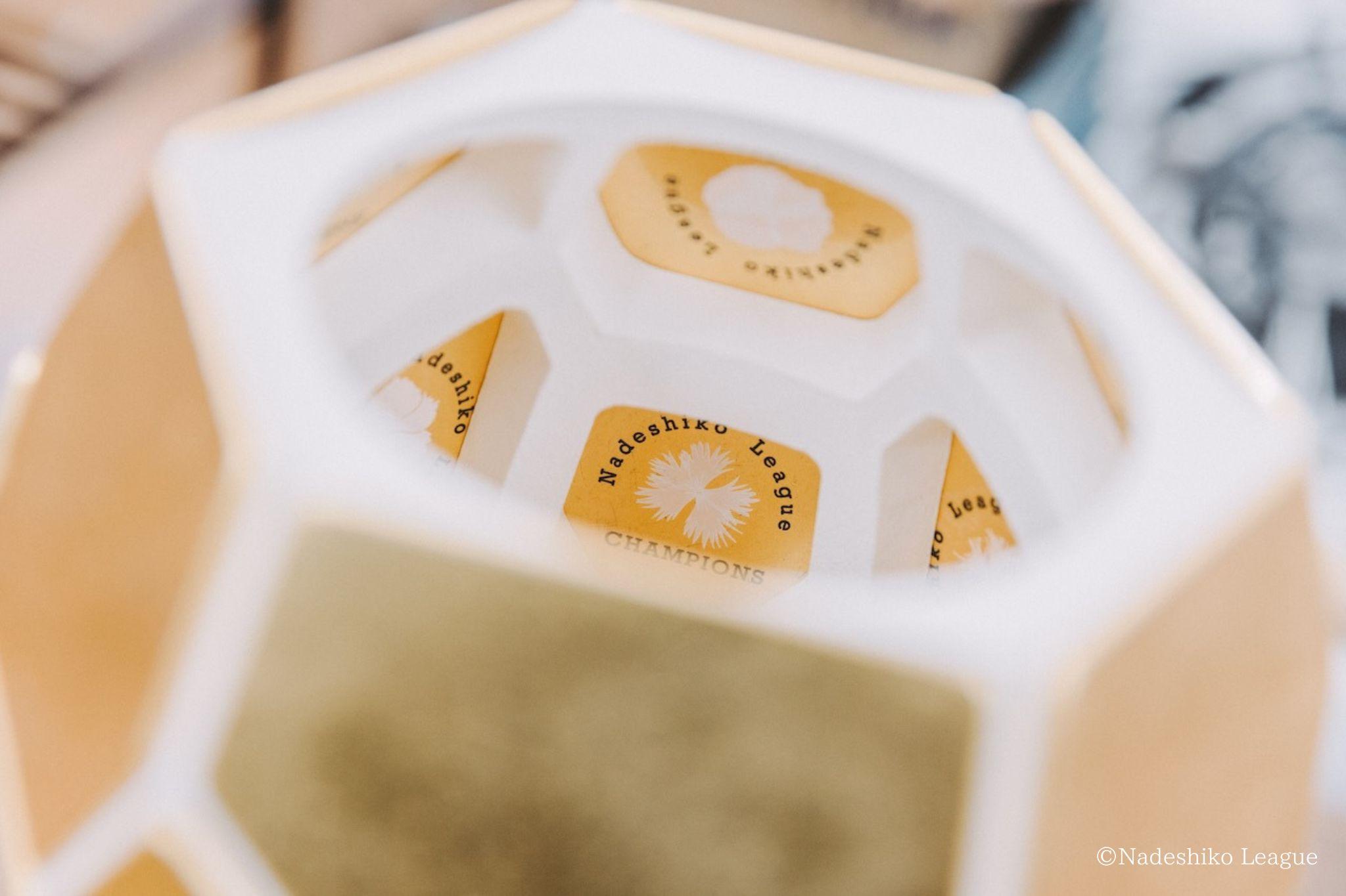 なでしこリーグ 1部優勝トロフィーの内側にはナデシコ科の様々な花が描かれている