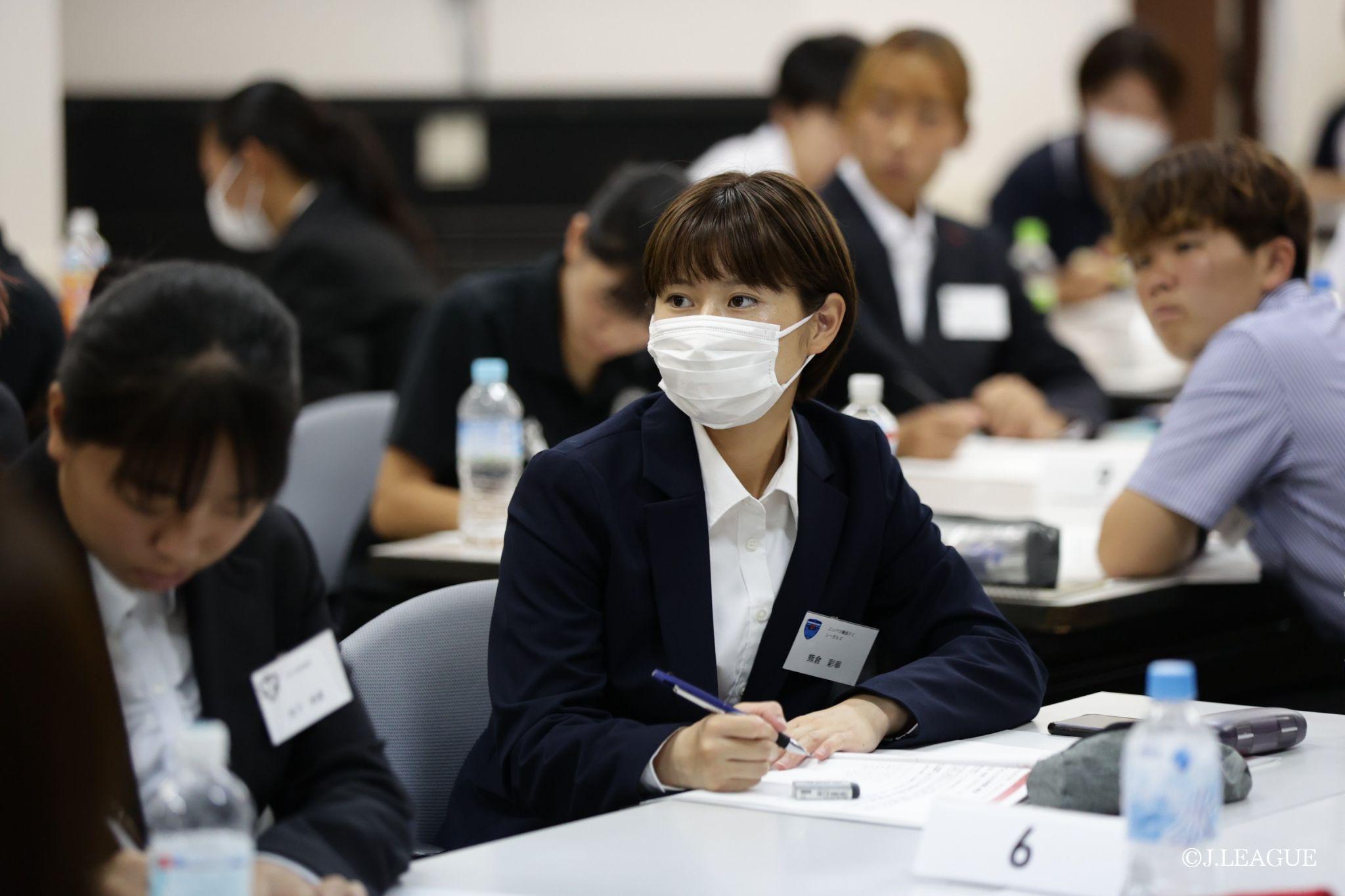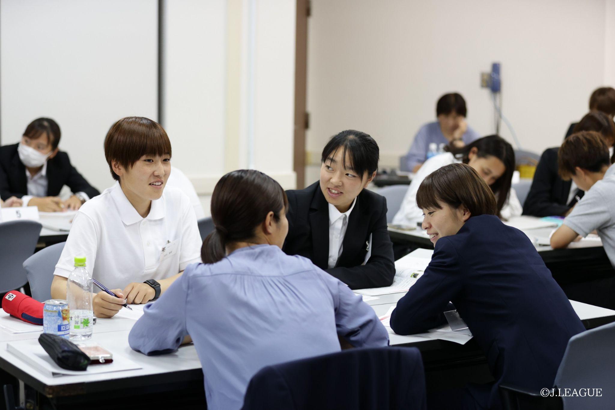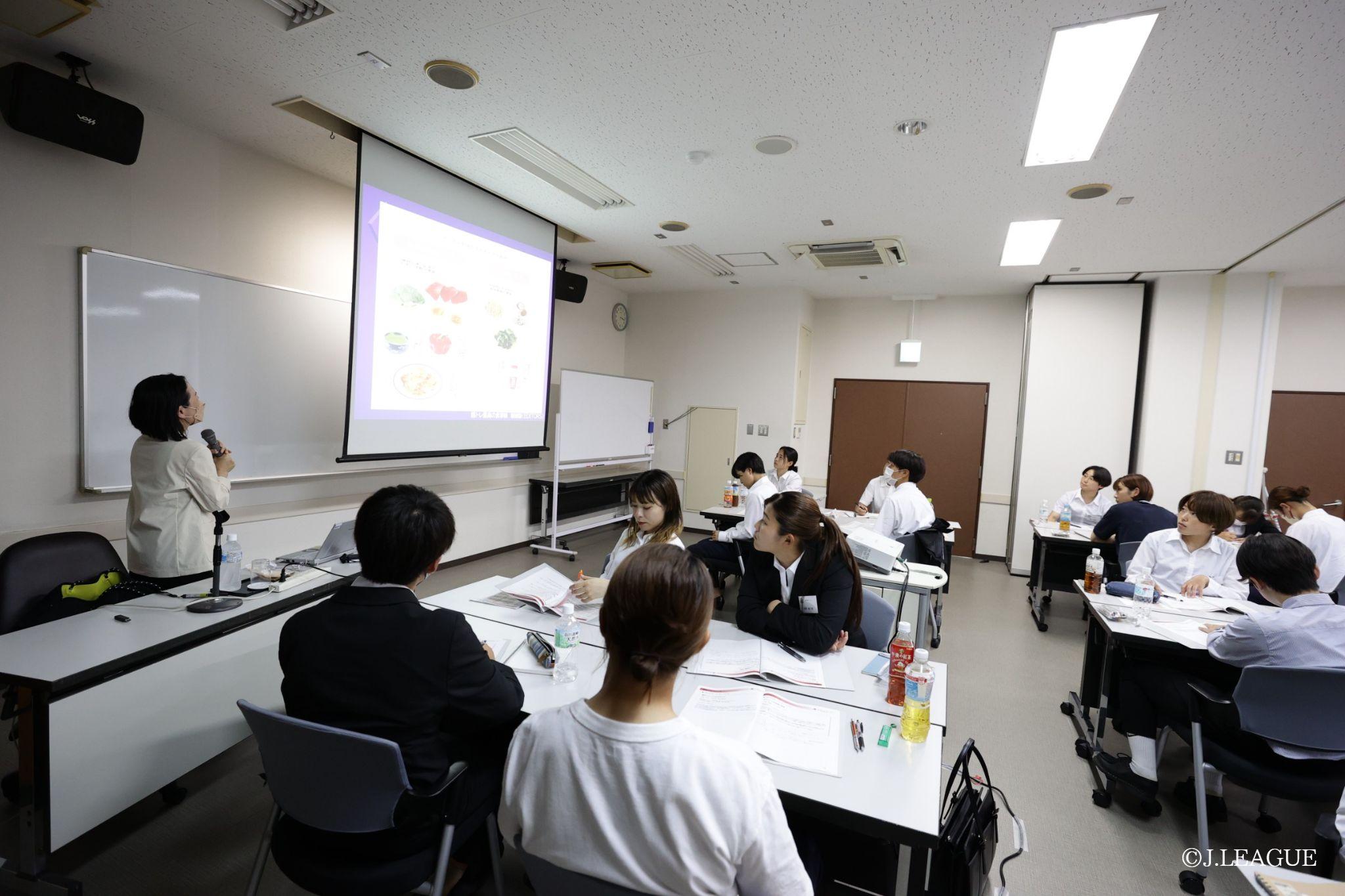 この研修に参加したのは、今年からなでしこリーグのチームでプレーをする新人選手のほか、昨年までに参加できなかった 2 年目以降の選手も含めた計 55 人。2日間にわたり計 7コマの講義で、なでしこリーグの選手として必要な要素を学びました。