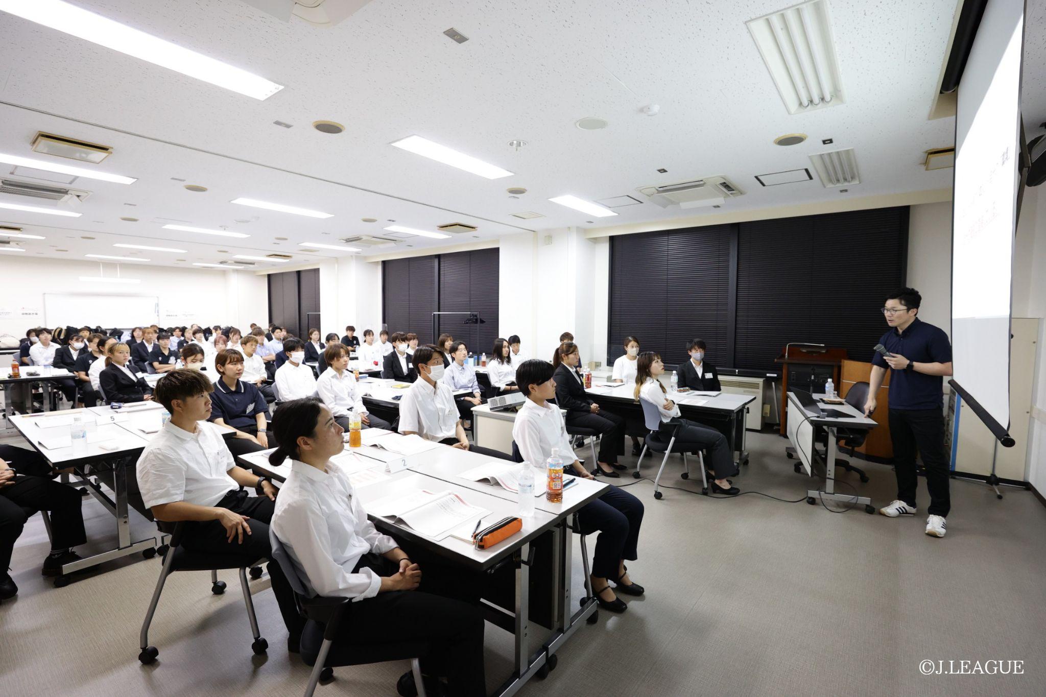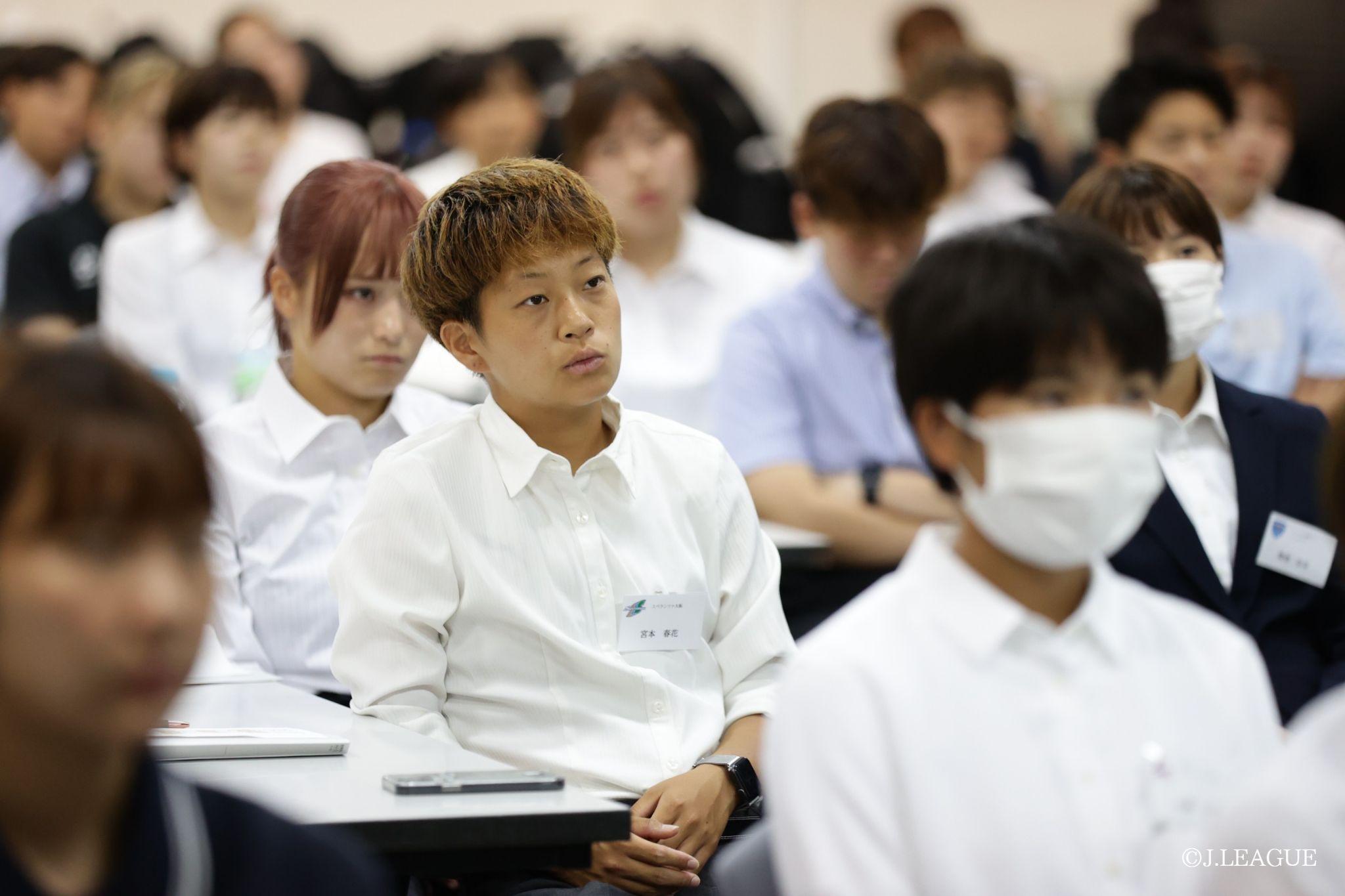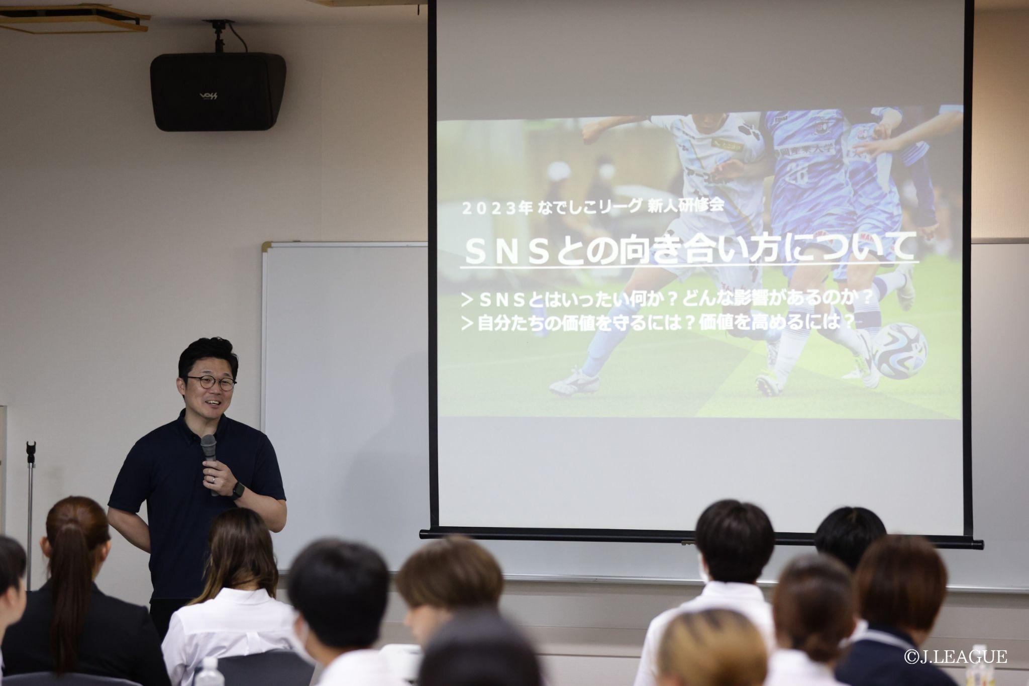 この研修に参加したのは、今年からなでしこリーグのチームでプレーをする新人選手のほか、昨年までに参加できなかった 2 年目以降の選手も含めた計 55 人。2日間にわたり計 7コマの講義で、なでしこリーグの選手として必要な要素を学びました。