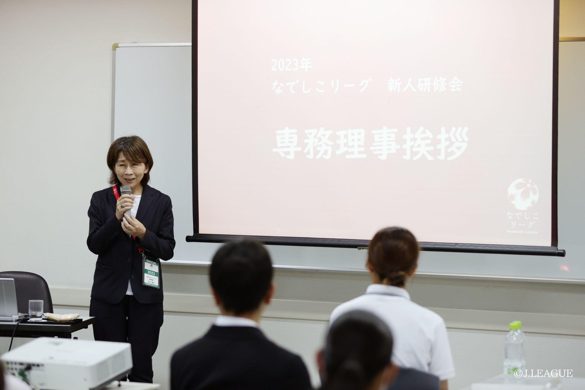7 月 3 日、4 日の 2 日間にわたり、なでしこリーグ新人研修会が行われました。会場はオフィシャルスポンサーの株式会社共立メンテナンス様の施設「リフレフォーラム」。