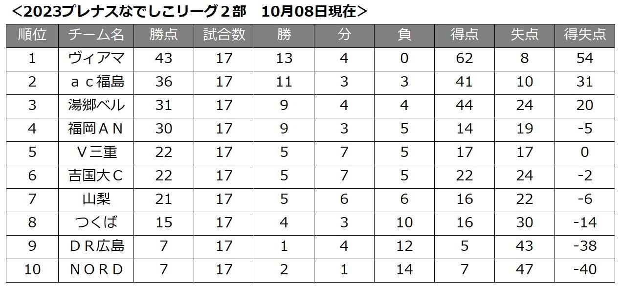 2023年のなでしこリーグ2部は、北海道から九州まで、まさに全国からの10チームがぶつかり合うシーズンとなり、毎週ワクワクする試合を展開してくれました。