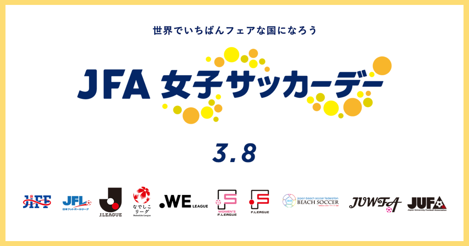 日本女子サッカーリーグ(なでしこリーグ)は、日本サッカー協会(JFA)が行っている「JFA女子サッカーデー」の取り組みに賛同し、誰もが安心・安全にスポーツに取り組めるよう、3月8日にSNS活用による啓蒙活動を実施いたしますこと、お知らせいたします。