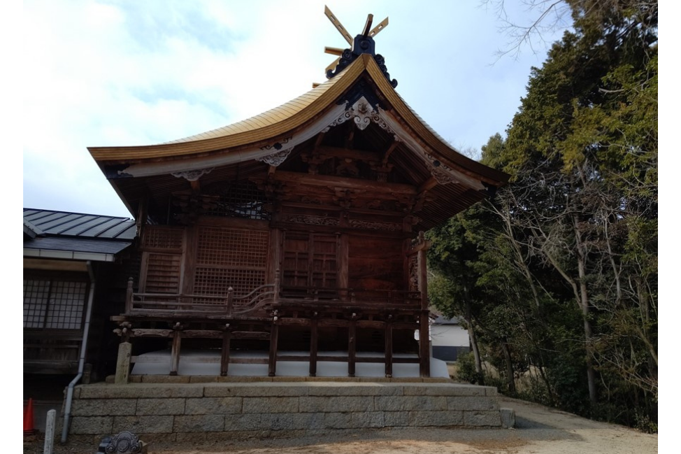 本殿屋根は令和4年にチタンで施工され、見事な金色(こんじき)の屋根となっています。