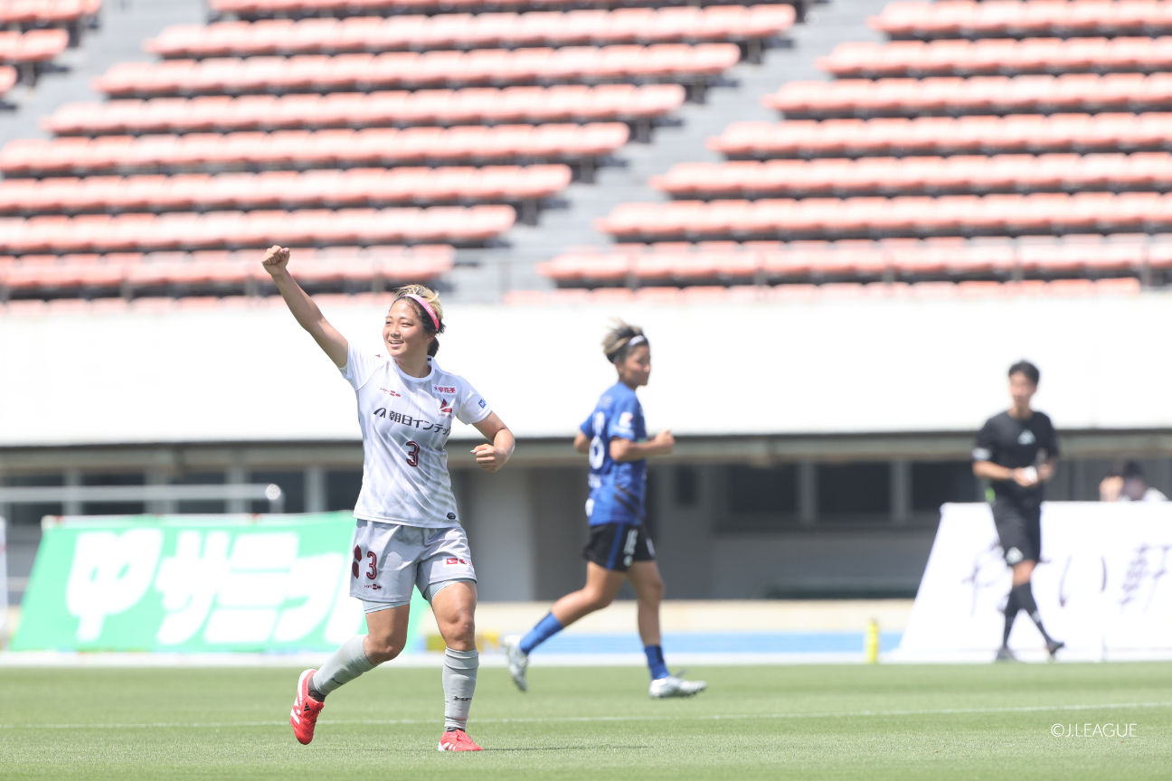 先制点は前半41分。名古屋の平尾愛穂が今季初ゴールをマーク。名古屋がリードを奪い、前半を0-1で折り返す。
