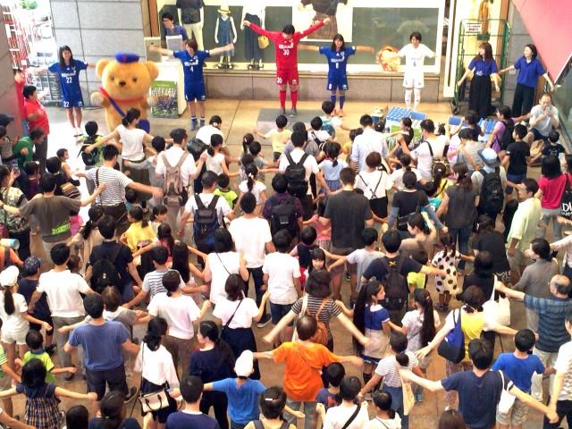日体大FIELDS横浜は、地域の活動に積極的に参加しています。青葉台東急スクエアとのコラボレーションで『みんなでラジオ体操をしよう!』も行っています(夏休みに開催。2020年・2021年はコロナ禍で中止)。青葉台駅前郵便局は、この活動にも参加しています。「青葉台エリアに郵便局が10局あるのですが、みんなに協力してもらって、一緒にチラシを配ったりしています」と語る村野さん。その結果、『みんなでラジオ体操をしよう!』は300人もの人が集まる地域イベントに成長したのです。