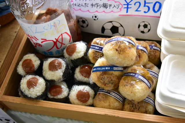 選手と作ったおにぎりを販売 提供:日体大FIELDS横浜オフィシャルサポータークラブBLUES(撮影:2019年)